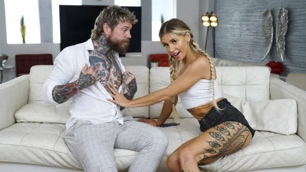 Today she is wearing a sexy dress that leaves her nipple quite visible, especially as they stiffen when she sees her new stepdaddy and asks if he wants to play with her. Looking at him, she lets her hands wander around her young fit body. Taking her time, she asks her stepdad to take out his cock and throb it for her. She would love to try it inside of her one day and these thoughts have her blood pumping and her clit throbbing in no time. She spreads her legs as she slides her fingers right into her panties. The air feels cool against her nipples and she can feel her pussy wet all the way through her panties. Taking her time, she touches every inch of her body, while he is pumping his cock. By the time her fingers slide between her wet lips, she has to hold back to keep from cumming right away. Enjoying the anticipation, she finally lets go, knowing that she is not alone tonight. There is no need to worry or rush, just enjoy and watch her stepdad pouring jizz.