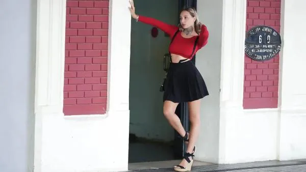Although Cyber knows she should be embarrassed, she gets through the conversation and goes to put her boss's things in the washing machine. When she gets to those briefs, though, she can't help but go back at it. Ryan is on the phone as he walks past the laundry room, and this time Cyber shows no shame at all in continuing while he watches until the buzz of the dryer interrupts her...