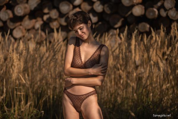 Sexy Katrina Lunk adores purchasing new toys to get new kinds of pleasures. This time, she bought a long brown dildo. She takes off her tiny outfit and plays with her shaved pussy. The naughty hottie teases her nipples till they get very hard and opens her pussy lips to dive deep into her juicy cunt. Finally, the excited cutie thrusts her new toy deep inside her wide-open hole and moves it back and forth until she gets her orgasm.