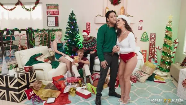 Sexy MILF Cherie Deville always goes the extra mile for her family on Christmas morning... too bad they never do the same for her. Cherie tries to keep on a happy face, but finds herself increasingly annoyed as the rest of her family opens mountains of gifts, when all she got was a half-priced robe. Cherie's daughter's boyfriend (Derek Savage) notices how pissed the generous MILF is and realizes the timing is right to slip her one extra gift... his big cock! Cherie is happy for some attention and lets the younger guy give her a good fucking in the living room and kitchen. Will the rest of the family catch them or are they too busy with their new stuff? Merry Christmas!